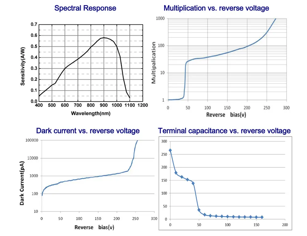 Responsivity: 50–55 A/W @ 905 nm, M=100